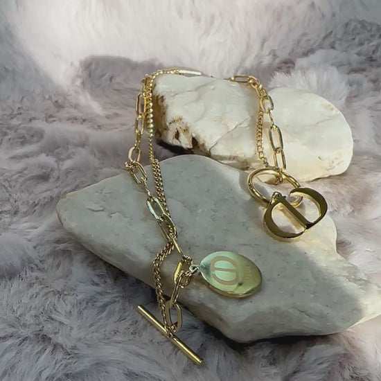 CharmWeave blends elegance with a touch of whimsy, where criss-cross chains meet a delicate plain chain adorned with subtle charms. This design creates a beautiful contrast, weaving together sophistication and playful charm. Perfect for adding a unique, personalized touch to any ensemble, CharmWeave is a timeless piece that speaks to both simplicity and intricate beauty.