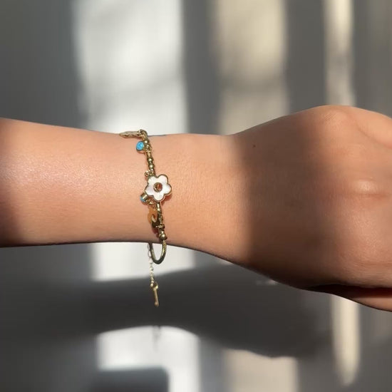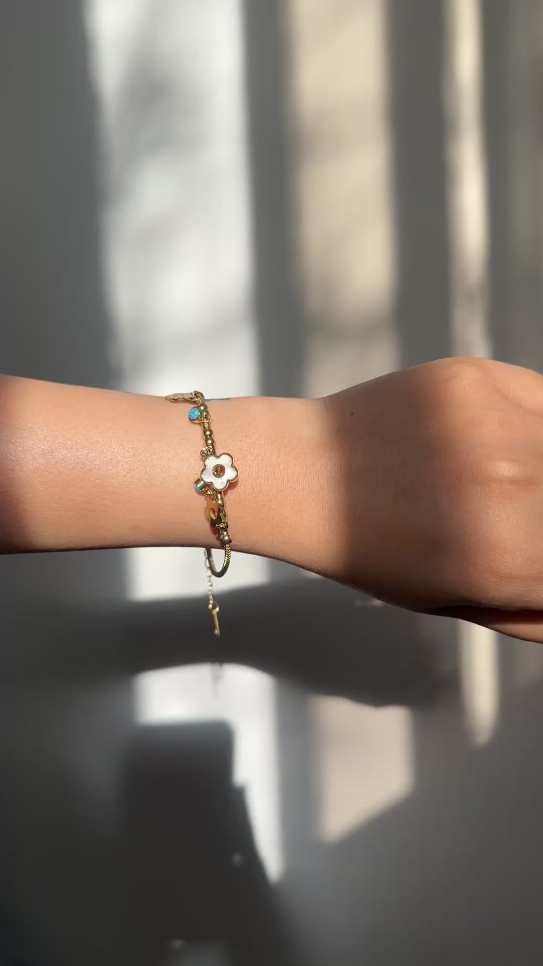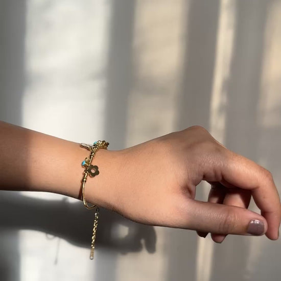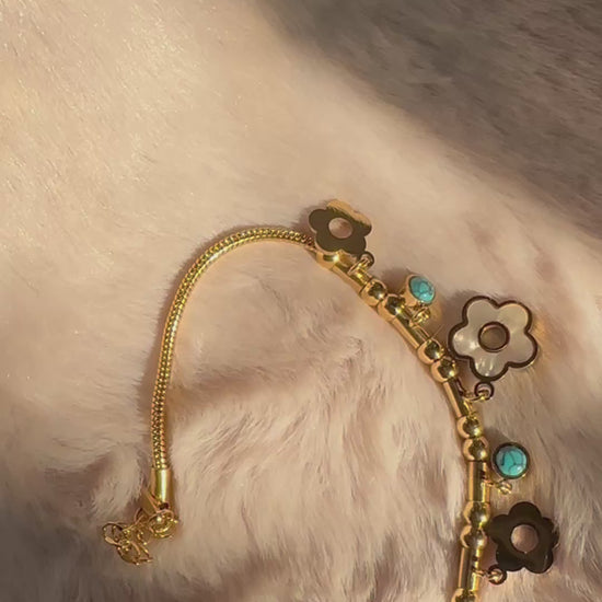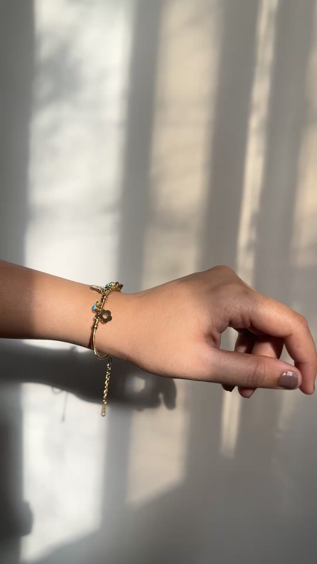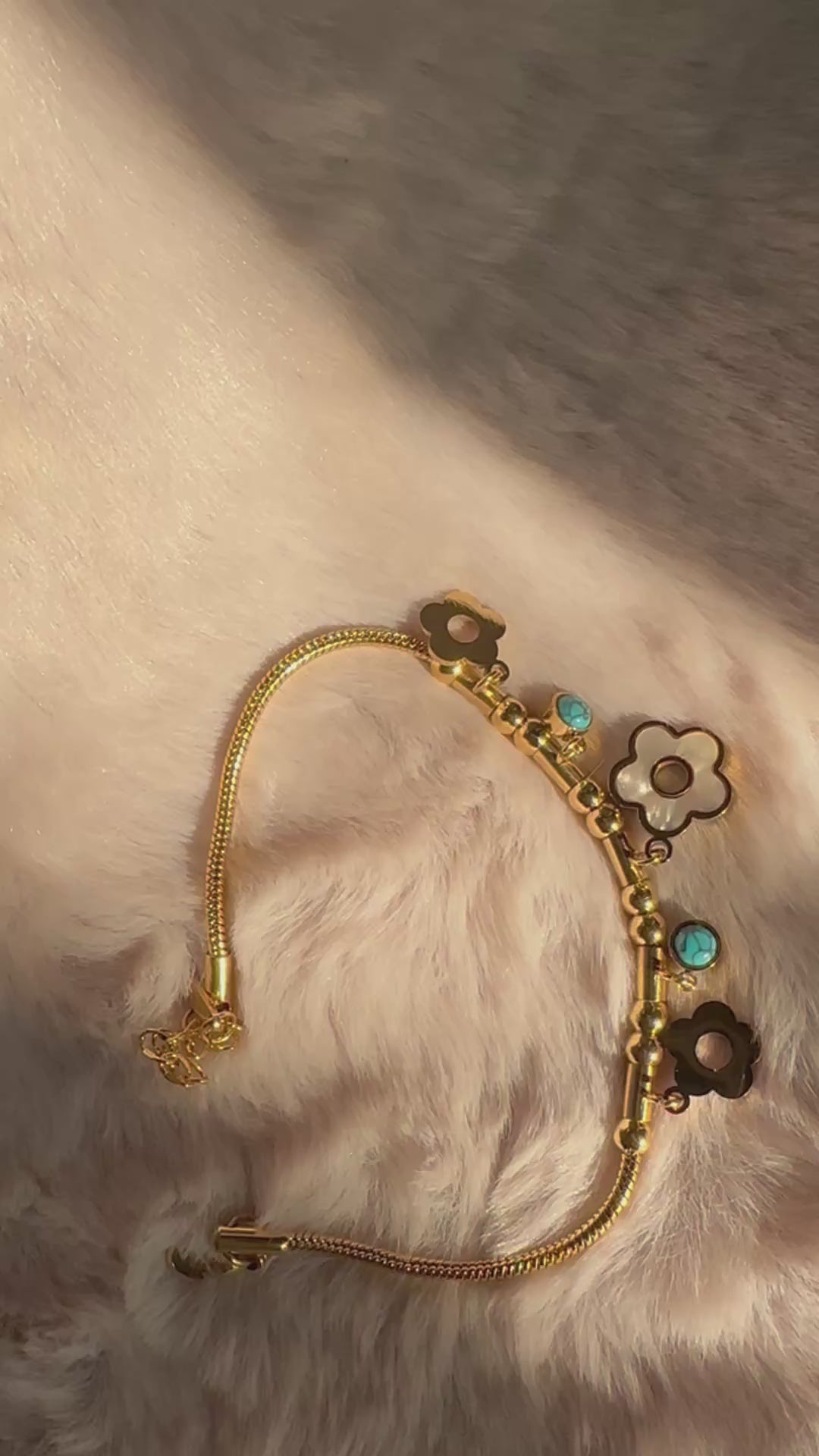 Delicate yet striking, the Floriva bracelet captures the playful beauty of flowers in full bloom. Crafted in a gold-tone finish with floral charms and hints of turquoise detail, this adjustable piece adds a touch of elegance to your everyday glow. Whether you’re dressing up or keeping it casual, Floriva flows effortlessly with your Saja vibe — graceful, bold, and unapologetically feminine.