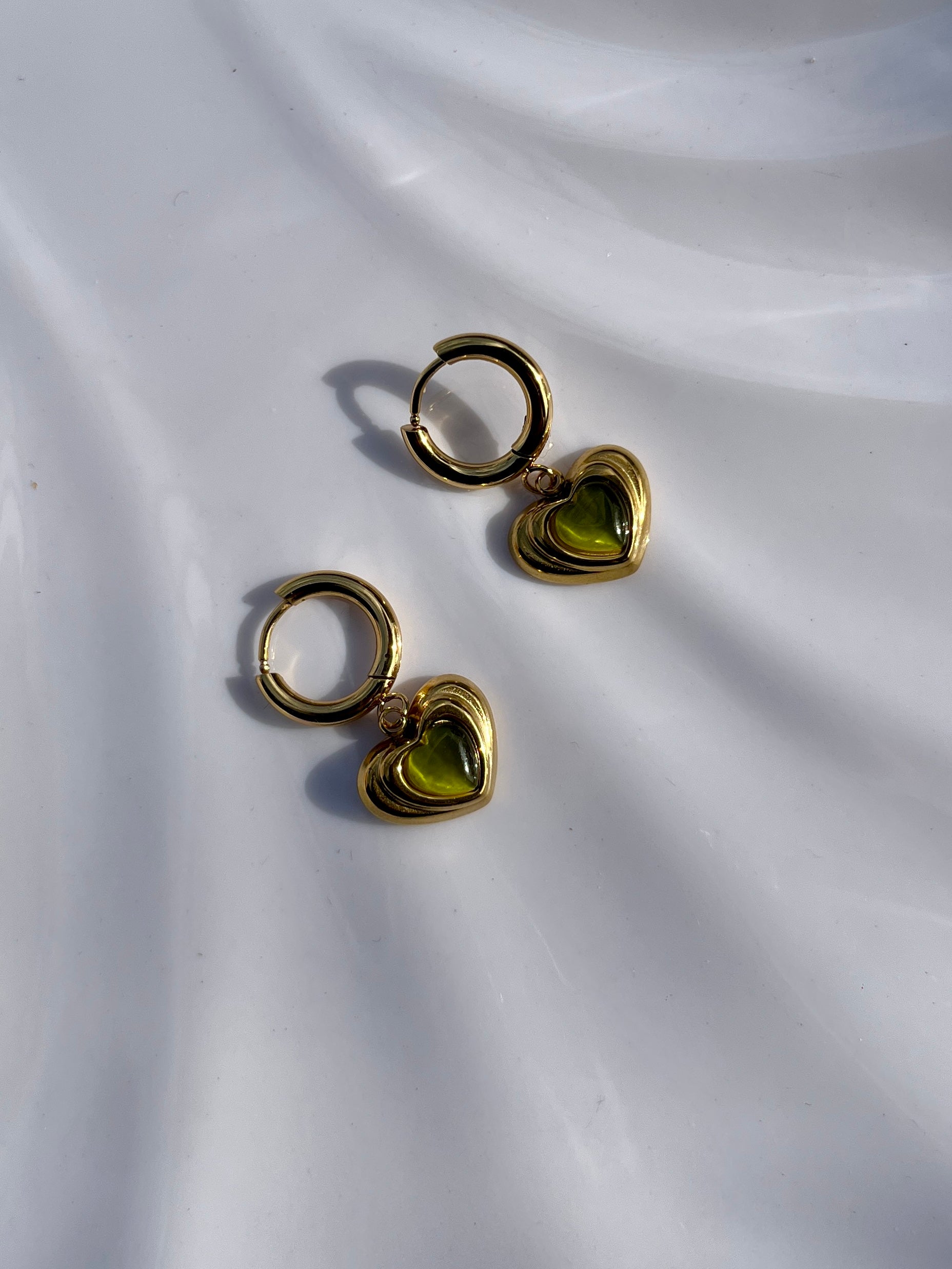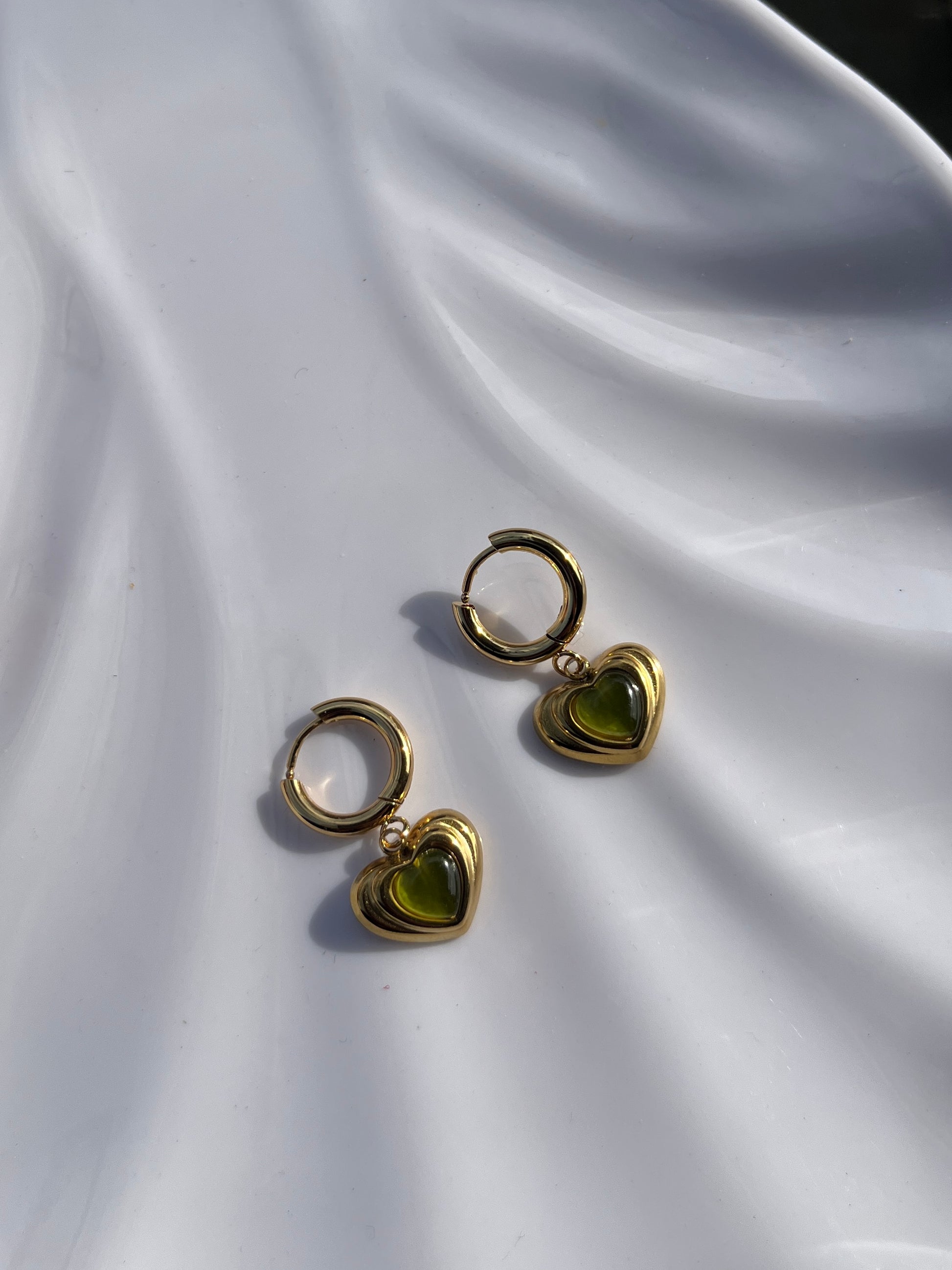 Styling Tip: Pair with neutral tones or soft knits to let the olive heart pop — or mix with gold studs and huggies for a soft, layered ear story.