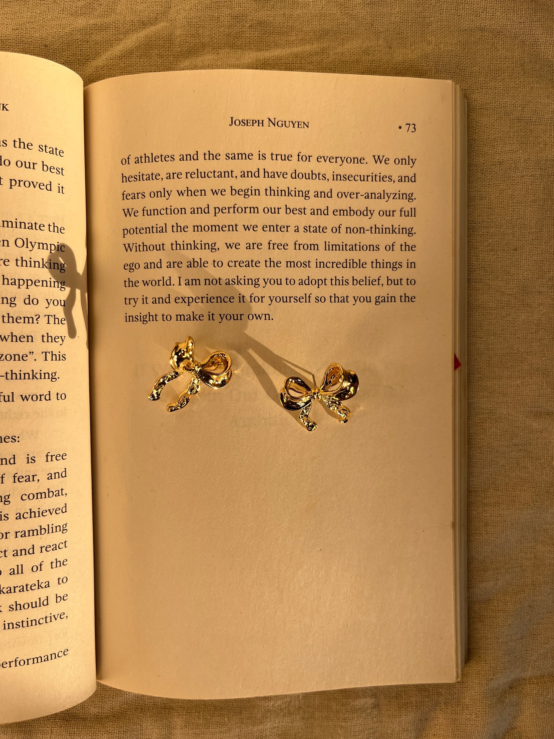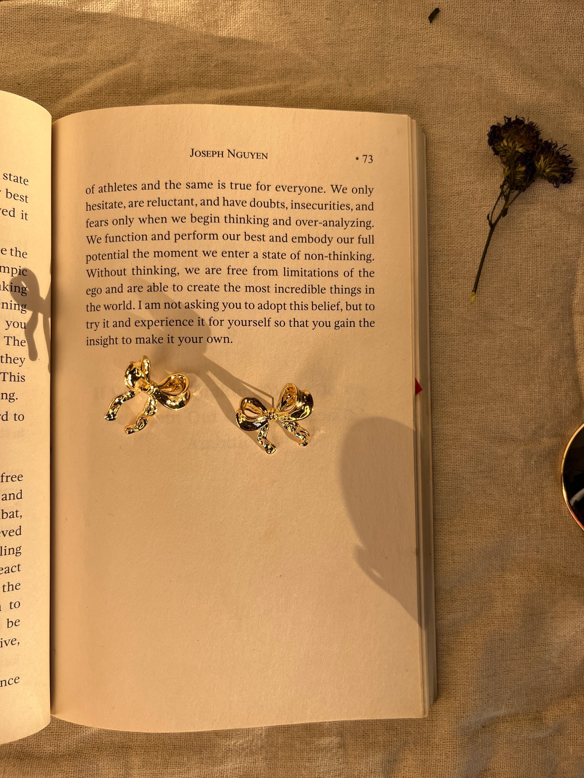 Inspired by Mohini, the divine enchantress, these golden bow earrings embody grace and charm. Delicate yet striking, they add a touch of timeless sophistication to any look.