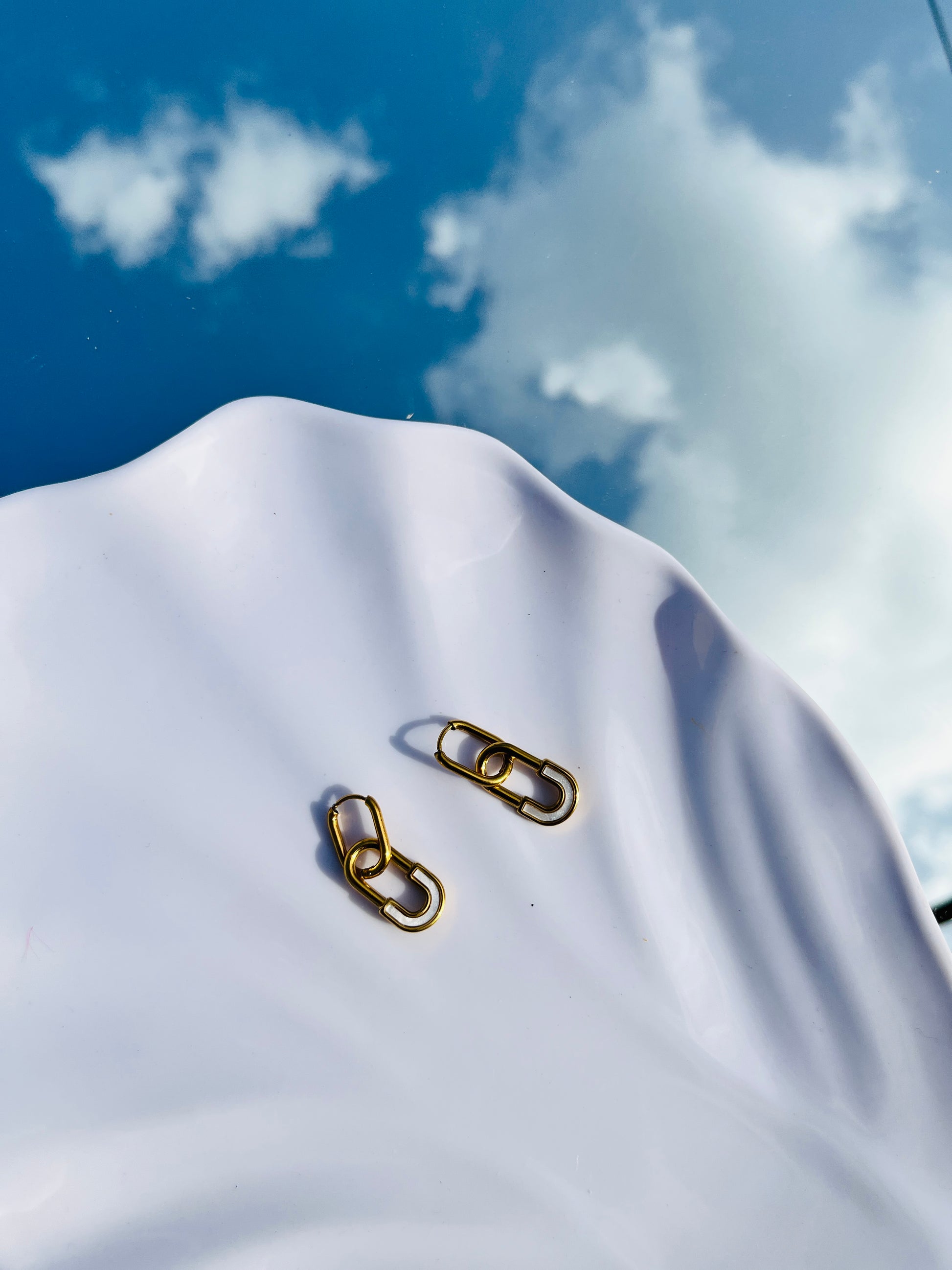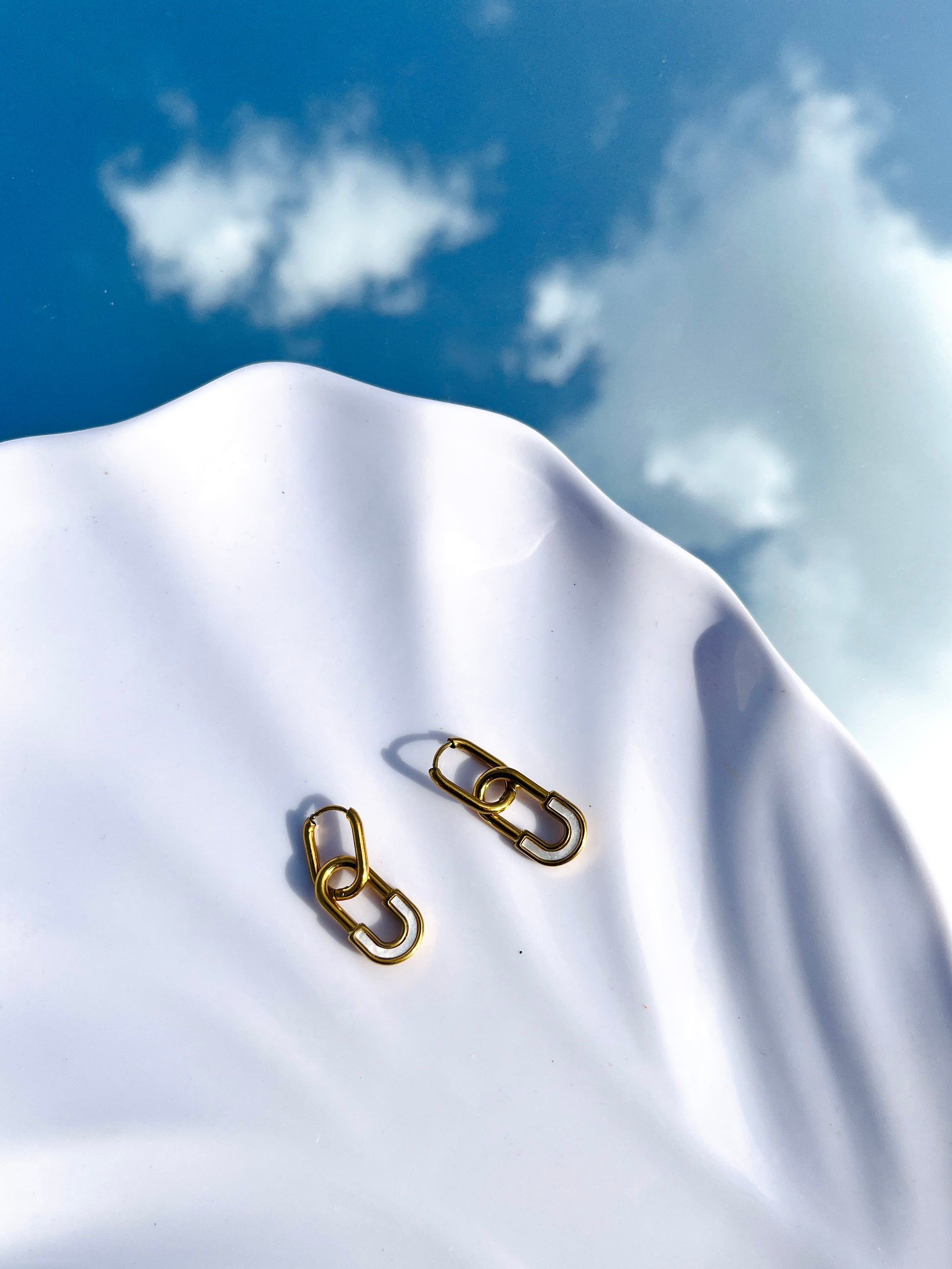 Step into your power with Orbit Locks—a statement pair designed to reflect movement, connection, and confidence. Featuring two interlocked gold links, these geometric drop earrings create the illusion of floating structure while keeping it ultra lightweight. Sleek enough for day, bold enough for night, they’re your new go-to for standout minimalism.