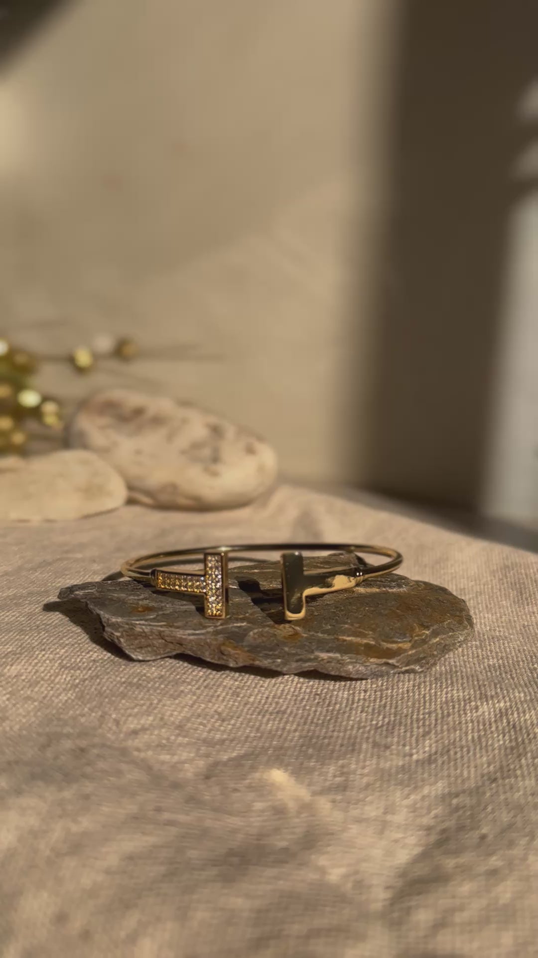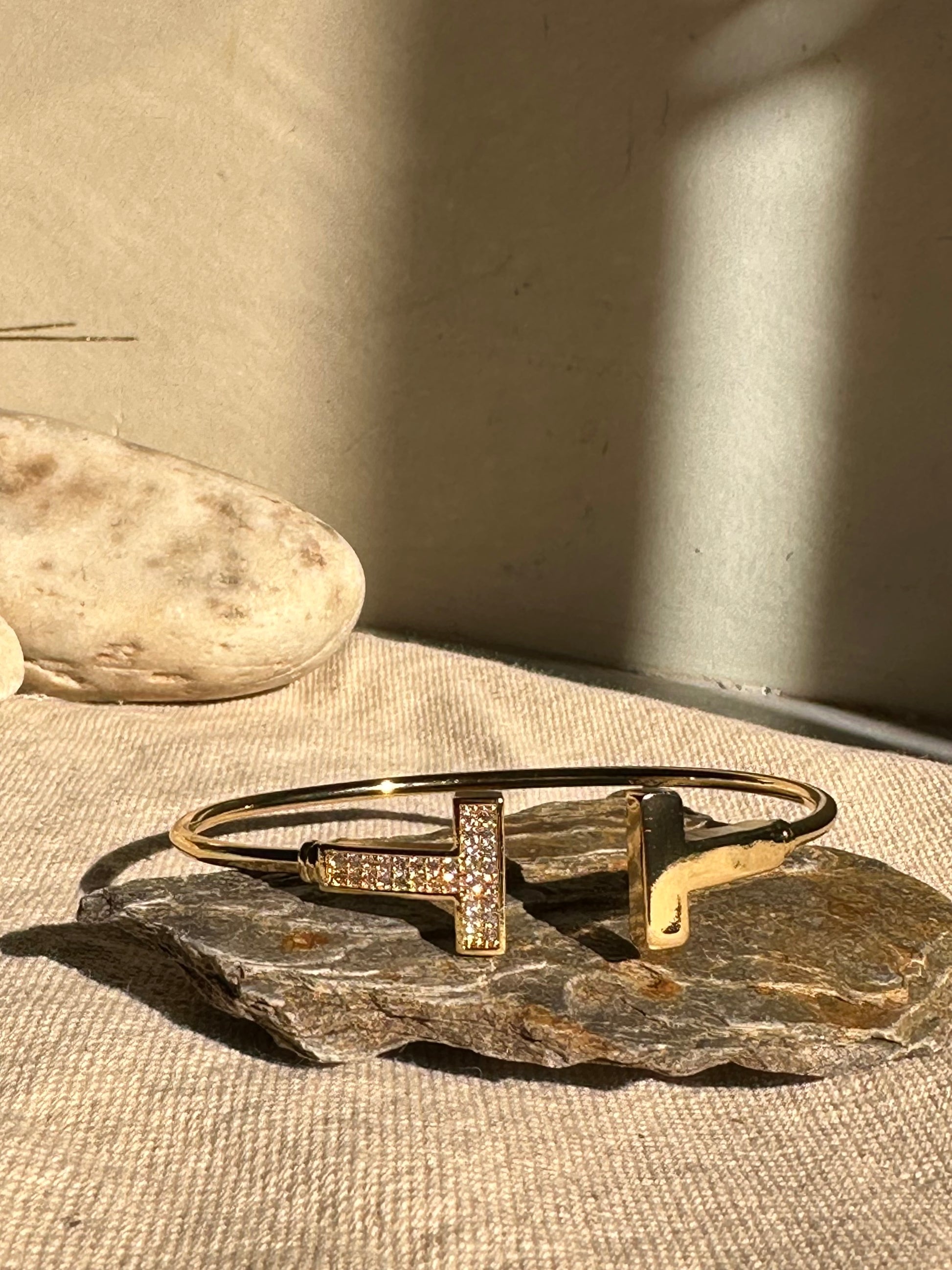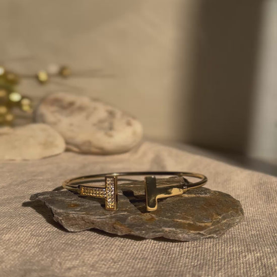 A modern take on elegance, the Selin Bangle Bracelet is a statement of confidence and refinement. Its sleek design, adorned with shimmering details, makes it perfect for both everyday wear and special occasions.