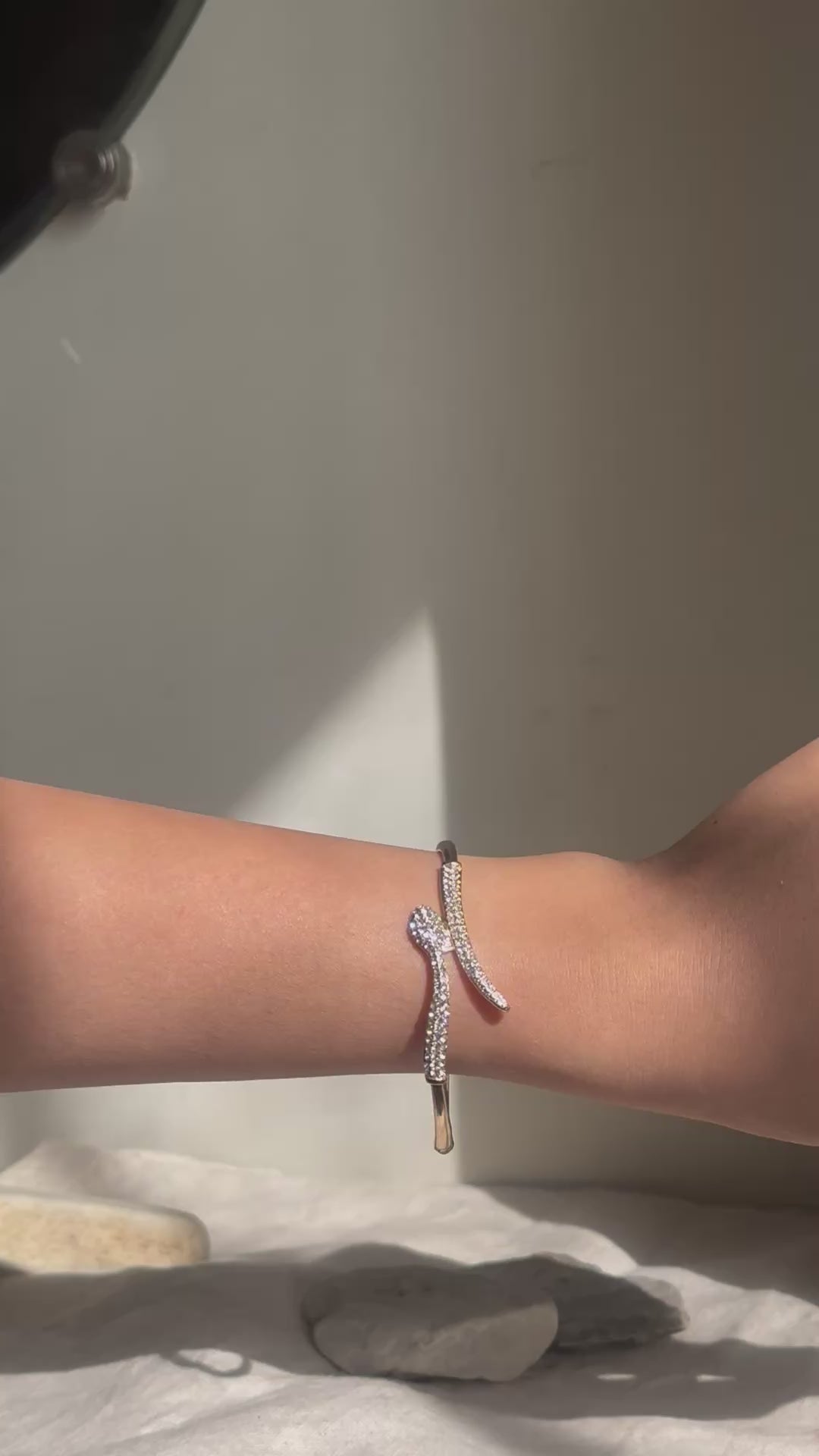 Inspired by the fluid elegance of a serpent, the Serpentina Bracelet is designed to wrap your wrist in effortless sophistication. Its intricate, textured design reflects light beautifully, making it the perfect statement piece for any occasion.